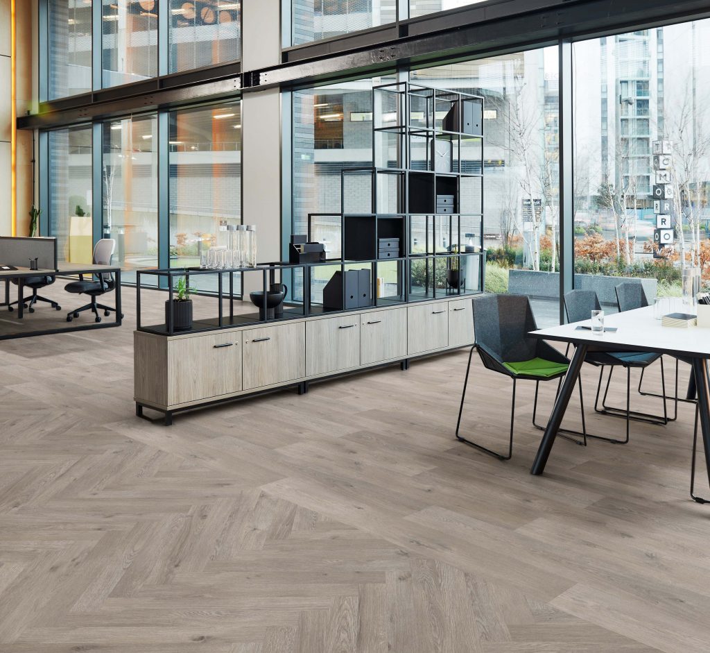 A true highlight of Expona Flow lies in its pattern-led series, including Herringbone, Basket Weave, Chevron, and Infinity. These designs reinterpret traditional parquetry and geometric motifs in a modern sheet format, combining pattern precision with seamless practicality. The ability to achieve zoning, wayfinding, and visual rhythm within one continuous floor surface allows designers to create layered, purposeful spaces without installation complexity or material transitions.